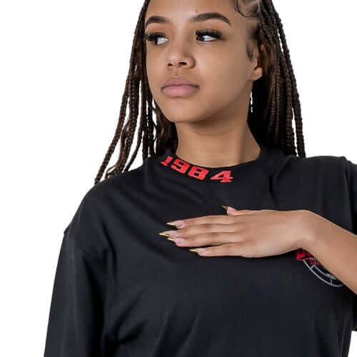 - Neck Graphic: A bold DTG-printed “1984” emblem, paying homage to Orwell’s message about the power of thought and resistance.